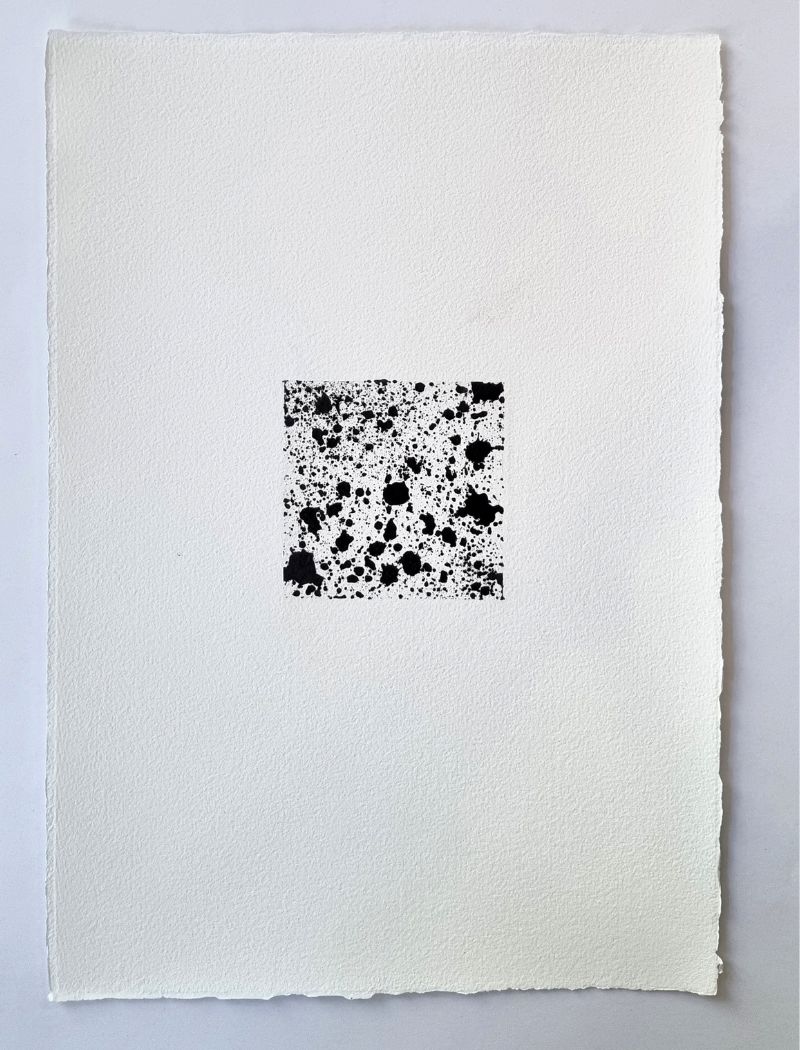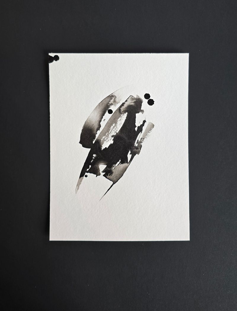 Le noir devient une matière vivante : il coule, se dépose, s’efface partiellement, s’impose ou se retire, en fonction du rythme que je lui donne…